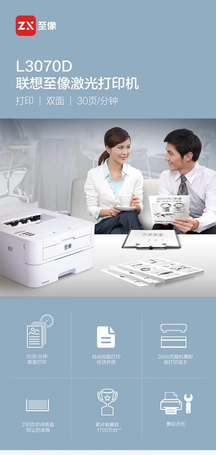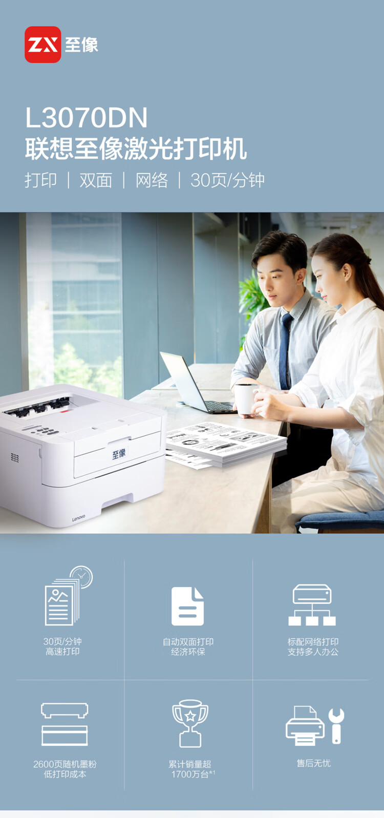 联想/LENOVO L3070 A4 黑白打印机 A4/A5打印小型家用