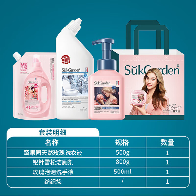 蔬果园/SUKGARDEN 1.8kg多用途清洁剂 玫瑰系列洁净三件套