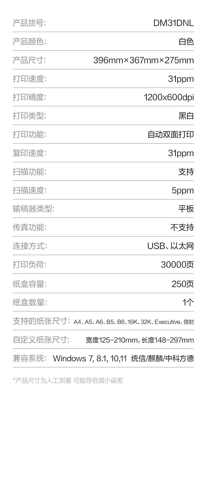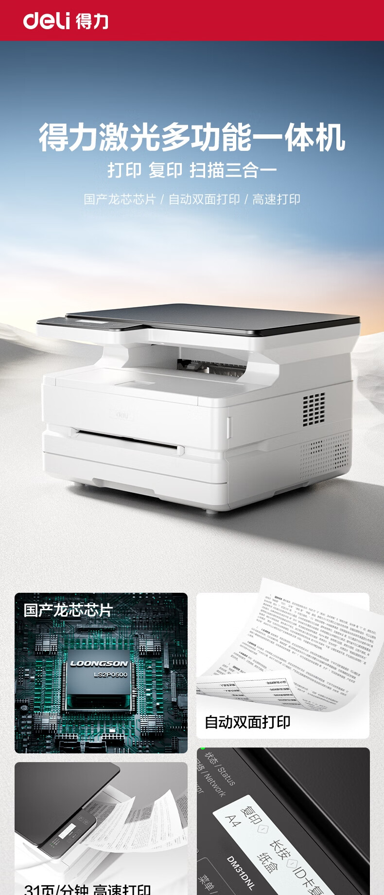 得力/deli DM31DNL多功能一体机 黑白激光多功能一体机(白色)(台)