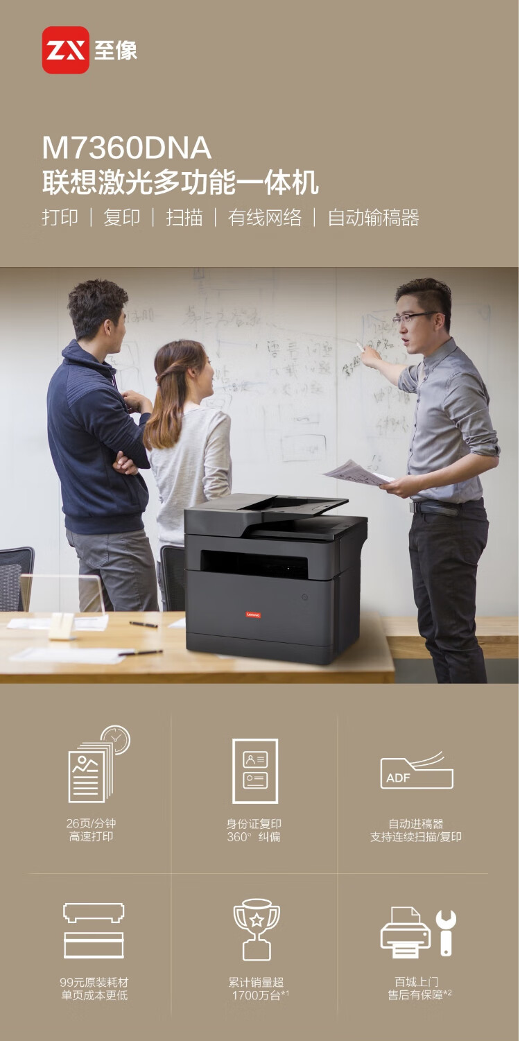 联想/LENOVO M7360DNW 多功能一体机 无线远程+有线网络+自动双面