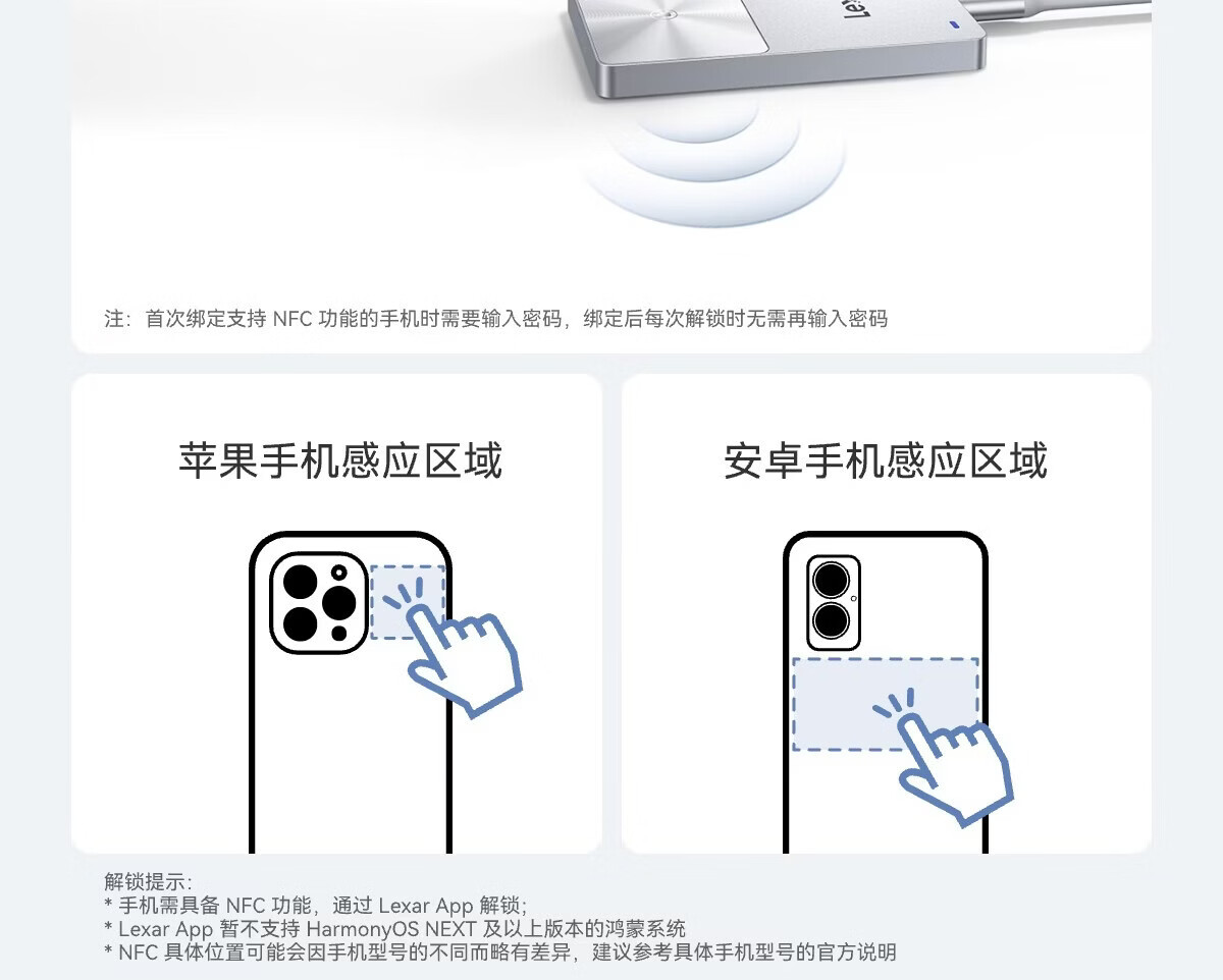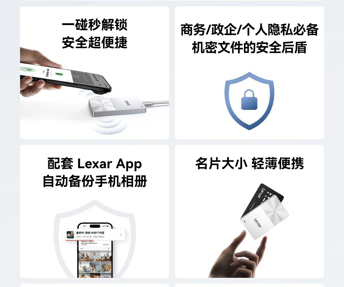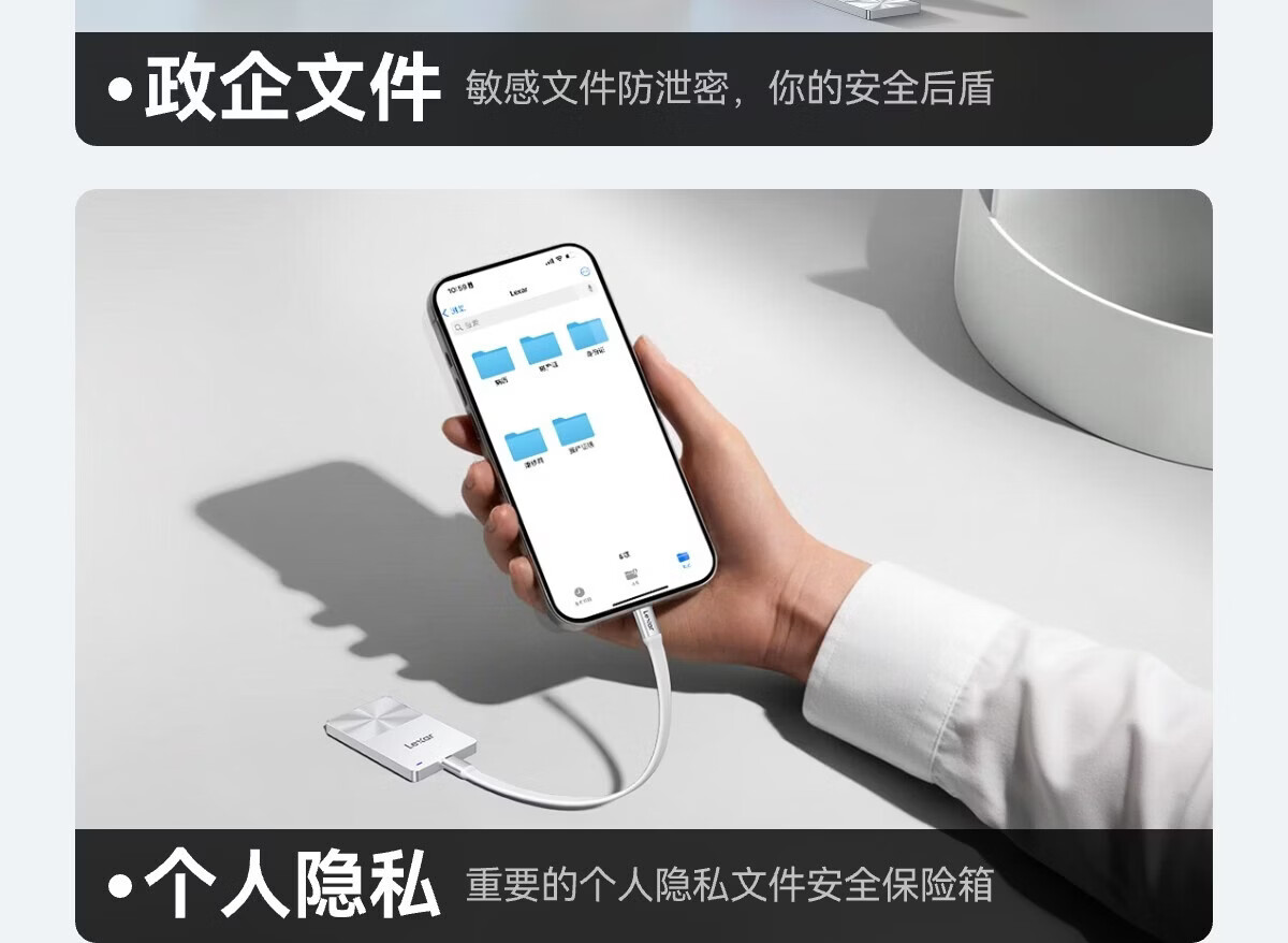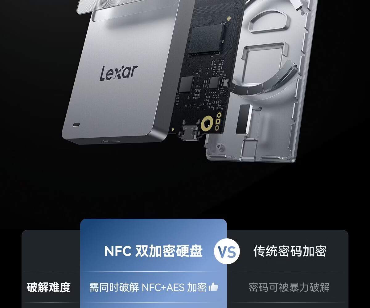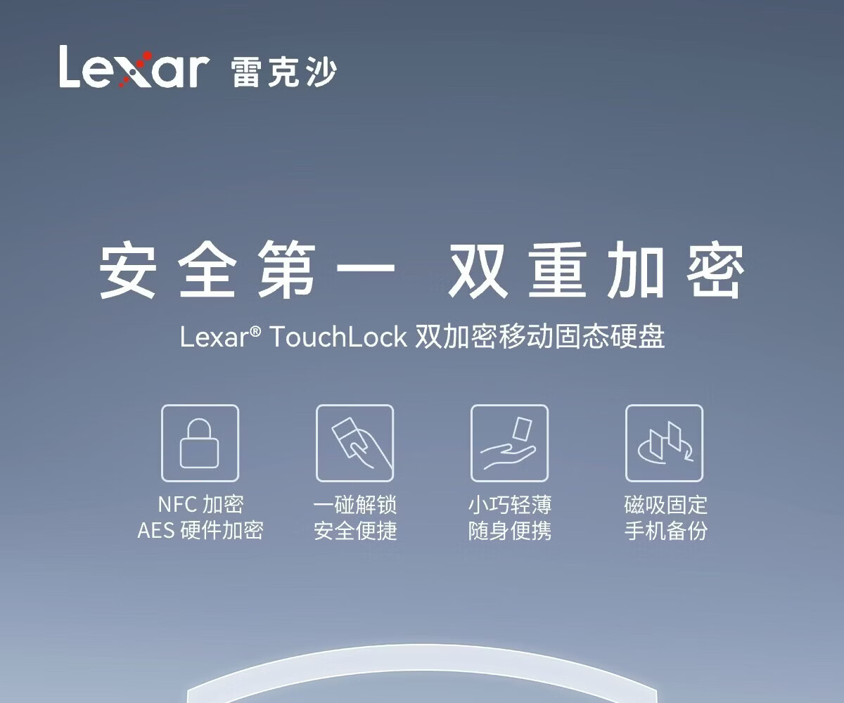 雷克沙/Lexar SL280 1T 移动硬盘 一碰解锁安全便捷商务/企业/隐私加密