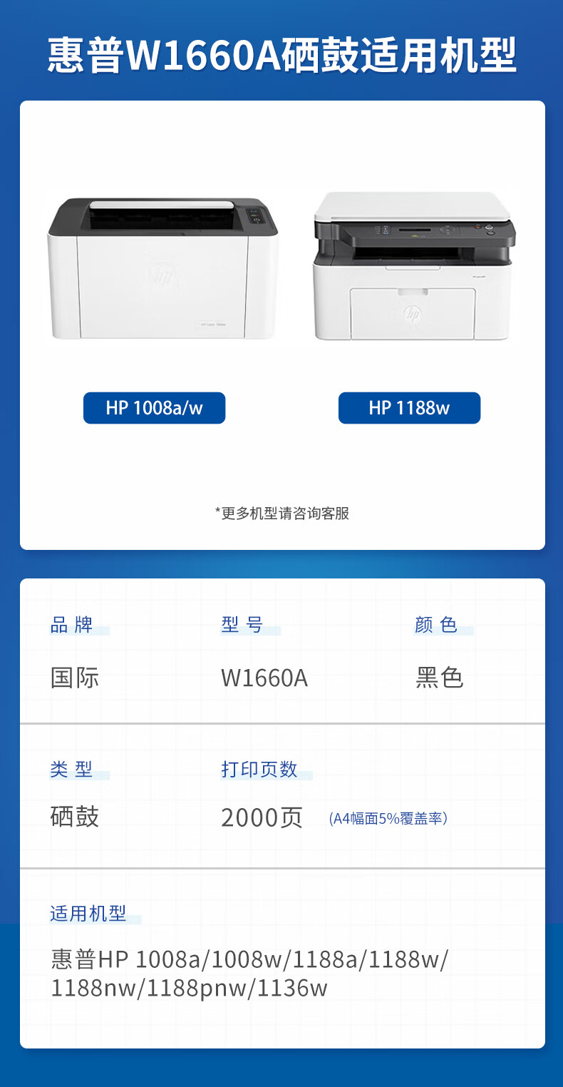 国际 W1660A 硒鼓 适用惠普1136w 1008a/w打印机硒鼓1188nw硒鼓1188pnw 166a 【带芯片】标准版硒鼓 2000页