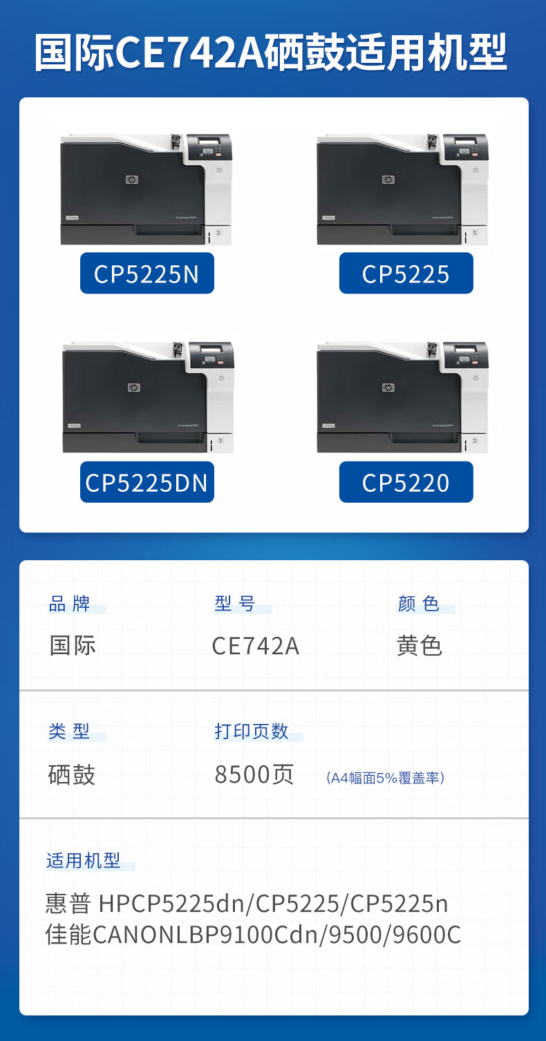 国际 CE742A 硒鼓 适用惠普LaserJet CP5225/5225n/5220打印机墨盒 CE740A/307A硒鼓