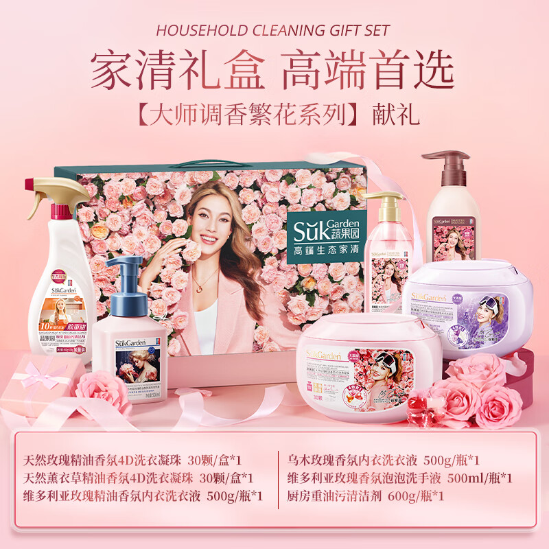蔬果园/SUKGARDEN 2.7kg多用途清洁剂 大师调香繁花系列高端家清礼盒6件套