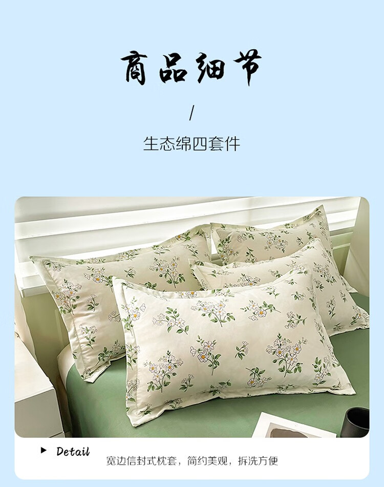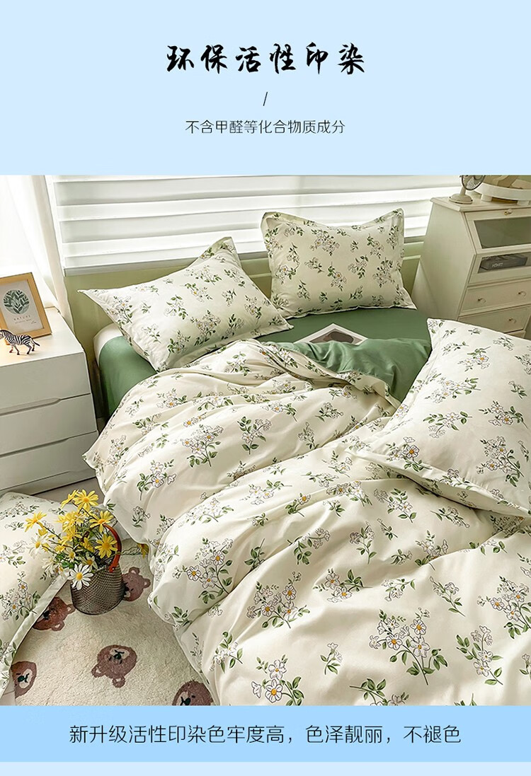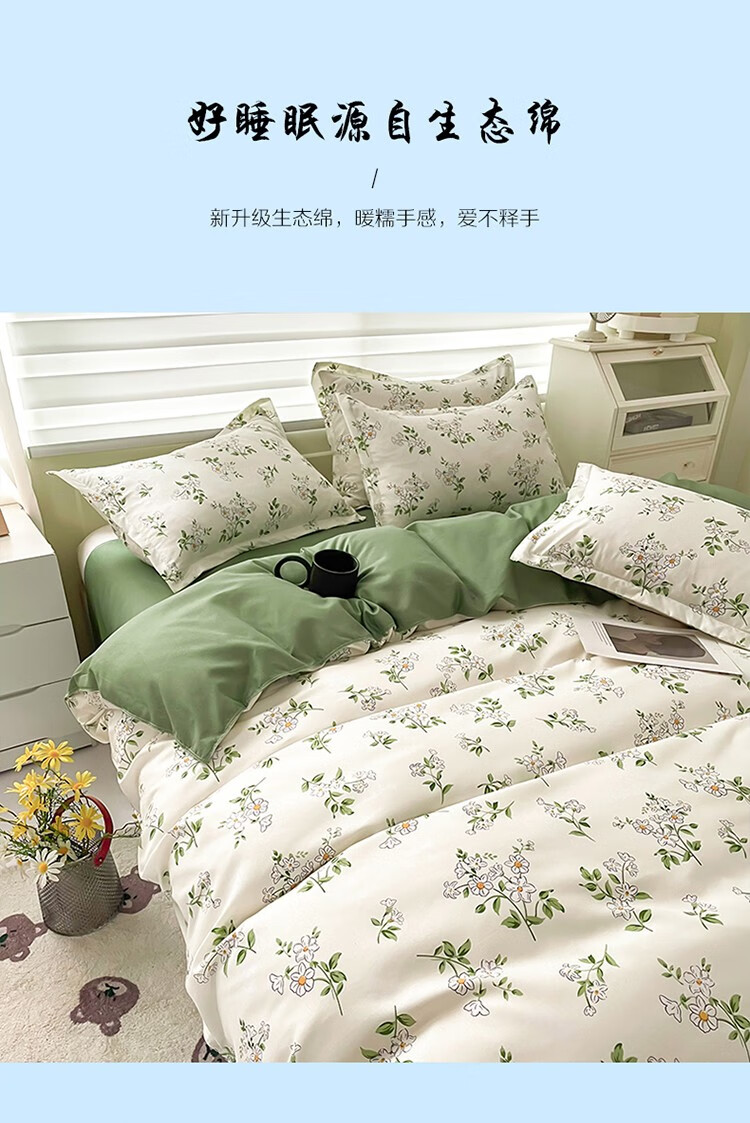 红豆/Hodo HD-T230311被子/被单 亲肤棉四件套-仙草 被套200*230cm*1床单230*250cm*1枕套48*74cm*2