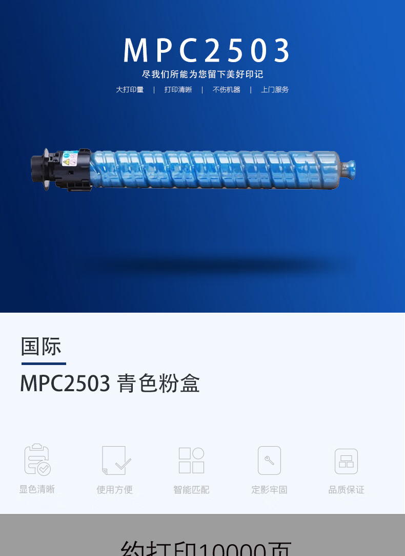 国际 MP C2503C 粉盒 适用理光MPC2011sp硒鼓粉盒MPC2503墨粉盒C2003打印机碳粉2504复印机墨盒MP C2503C 青色大容量约10000页