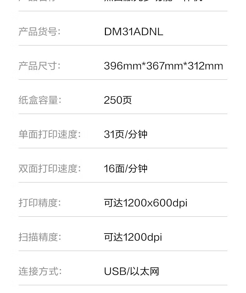得力/deli DM31ADNL多功能一体机 黑白激光多功能一体机(白色)(台)