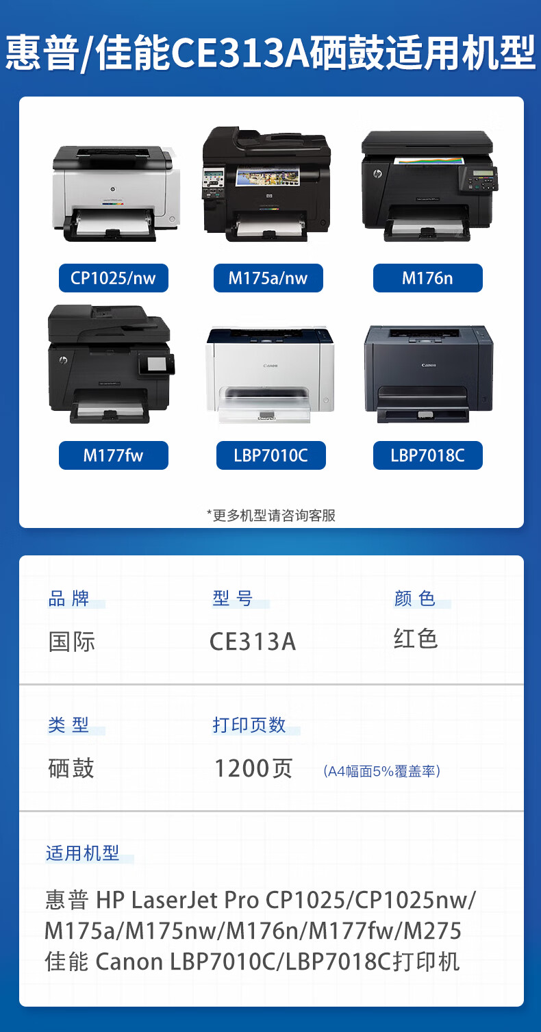 国际 CE313A 硒鼓 红色 适用惠普cp1025m176n粉盒HP126A M177fw M175nw M175a打印机墨盒佳能LBP7010C LBP7018C