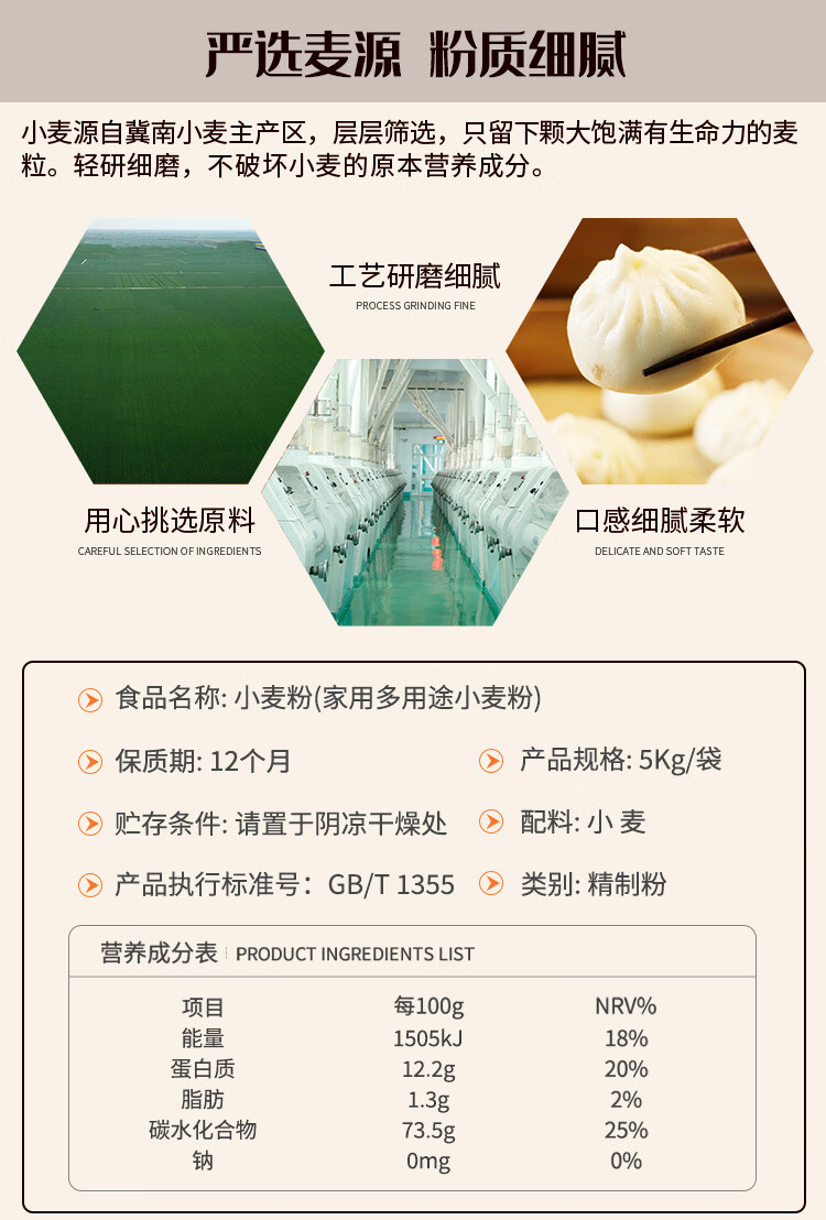 金沙河 5kg小麦面粉 家用多用途小麦粉 10斤