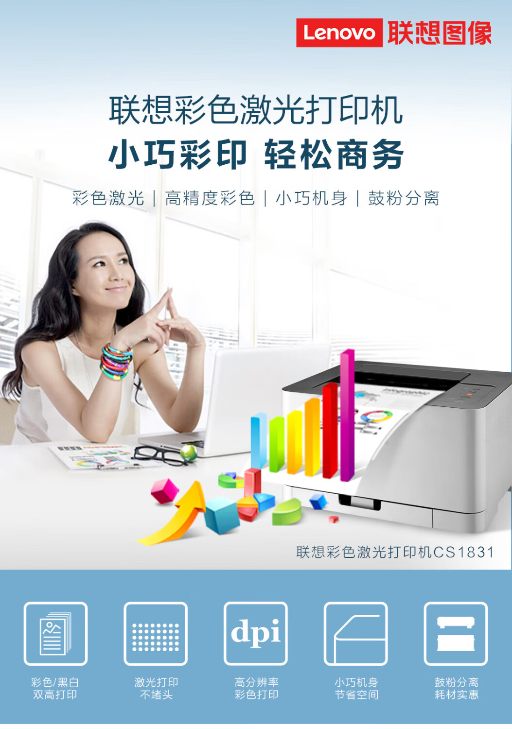 联想/LENOVO CS1831 A4 彩色打印机 单打印功能/USB数据线连
