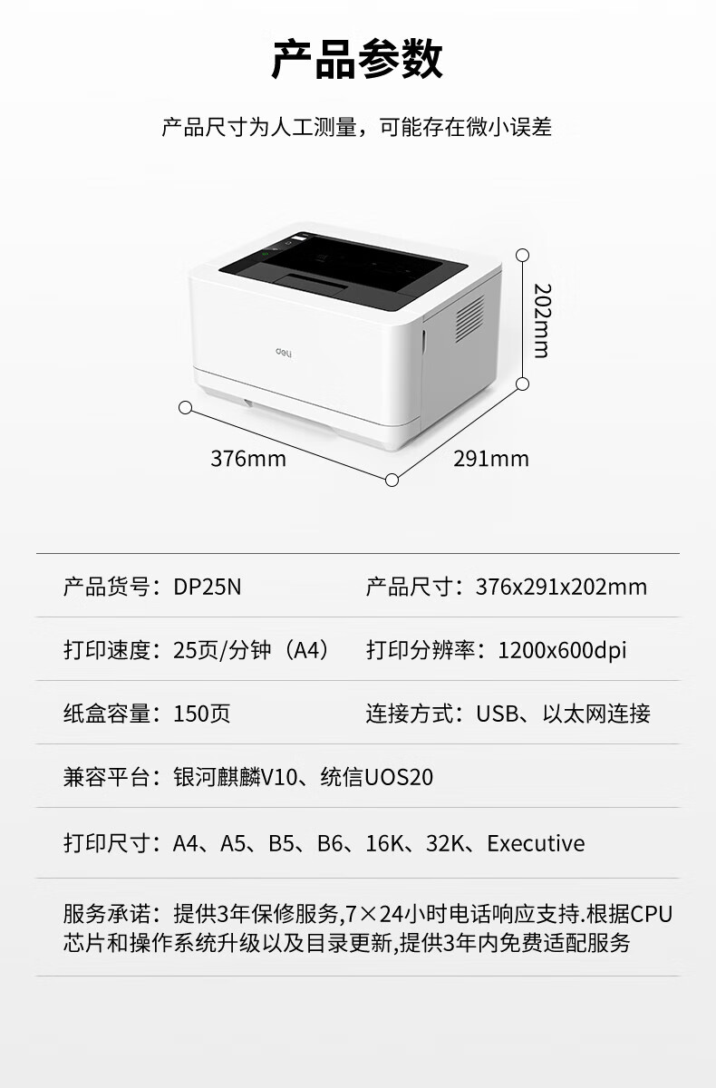 得力/deli DP25N A4 黑白打印机 激光打印机(白色)(台)