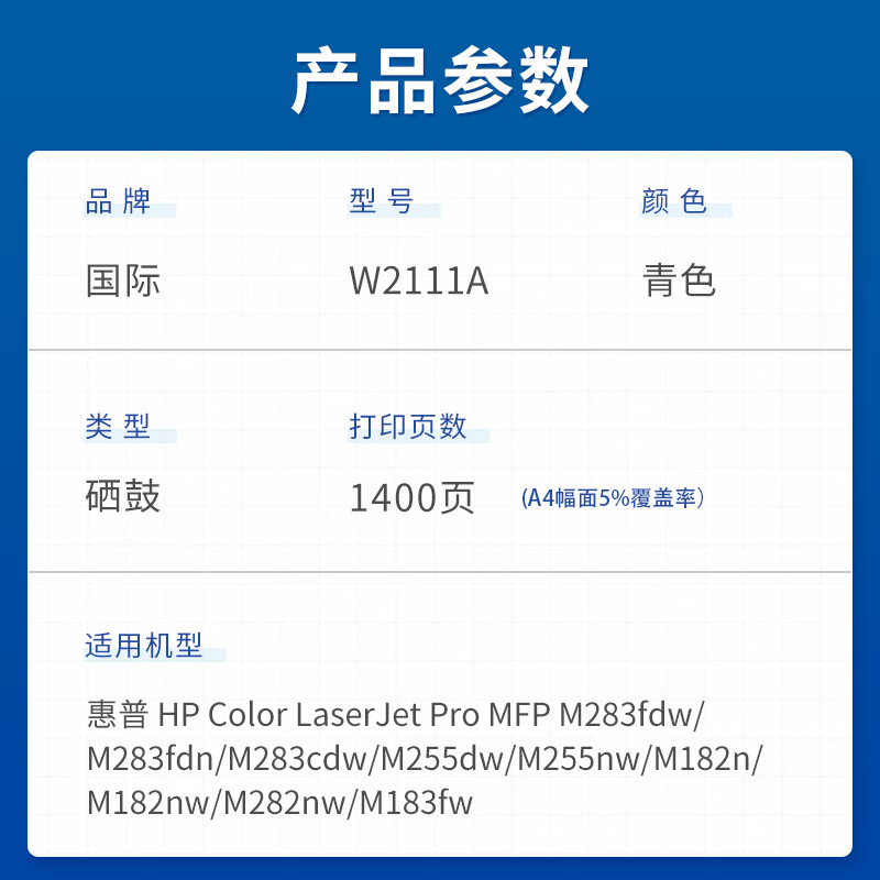 国际 W2111A 硒鼓 适用惠普M283fdw M282nw彩色墨粉仓M182n/nw m183fw打印机墨盒 W2111A青色硒鼓(带芯片)