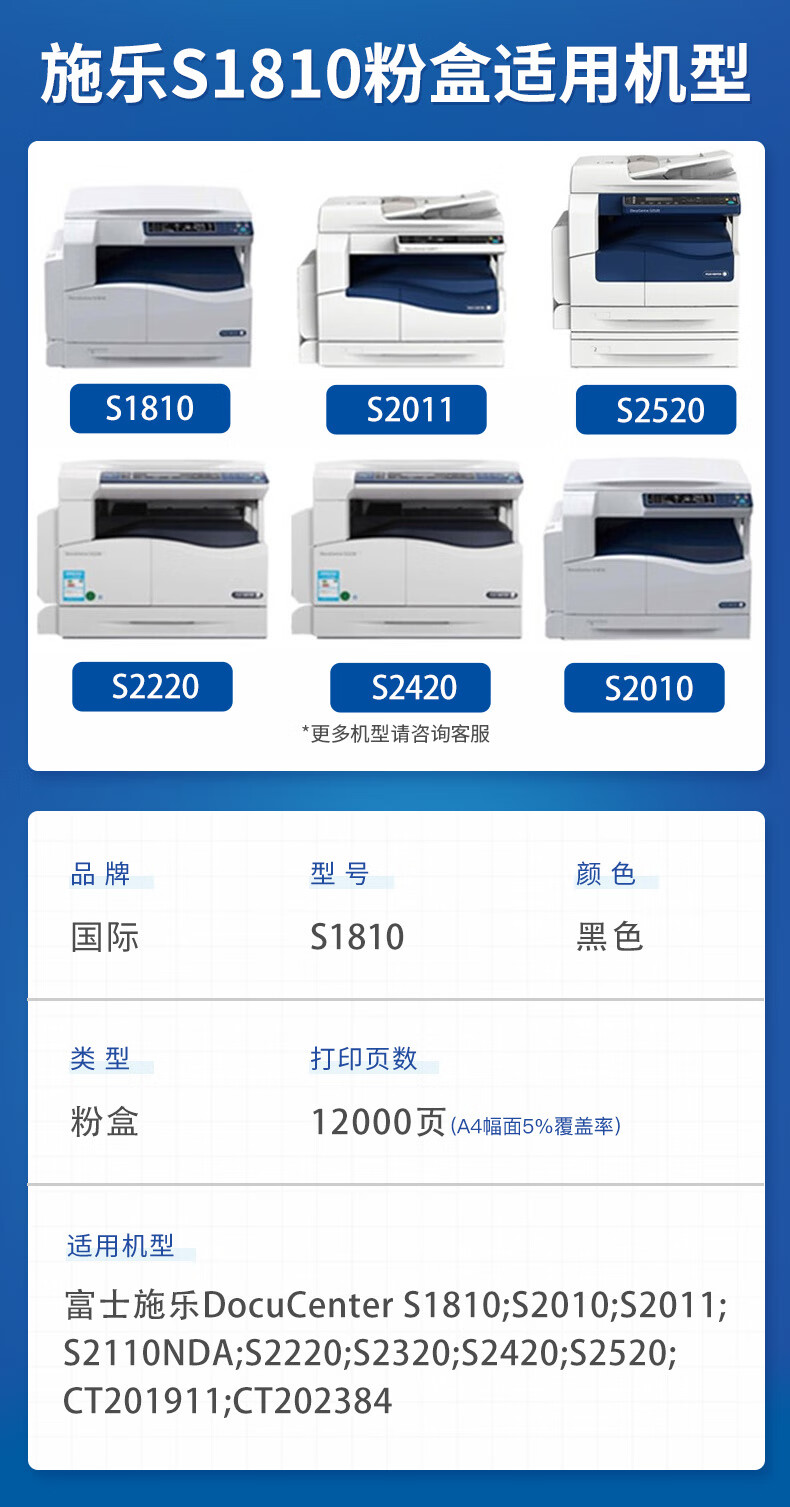 国际 S1810 粉盒 适用富士施乐docucentre s2110碳粉S1810粉盒S2520墨盒施乐2011硒鼓 S1810墨粉筒大容量单支装