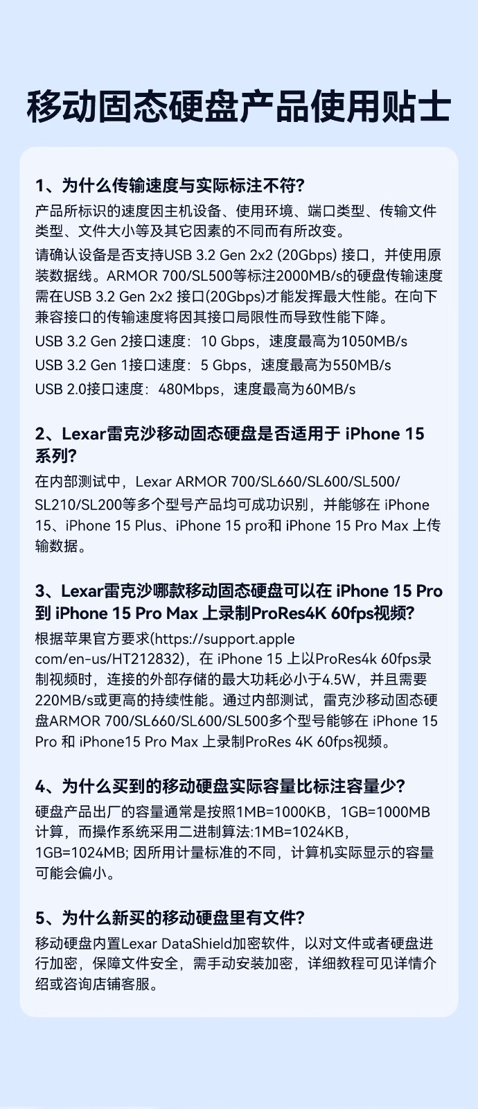 雷克沙/Lexar LAR700X 1T 移动硬盘 IP66防水防尘2000M