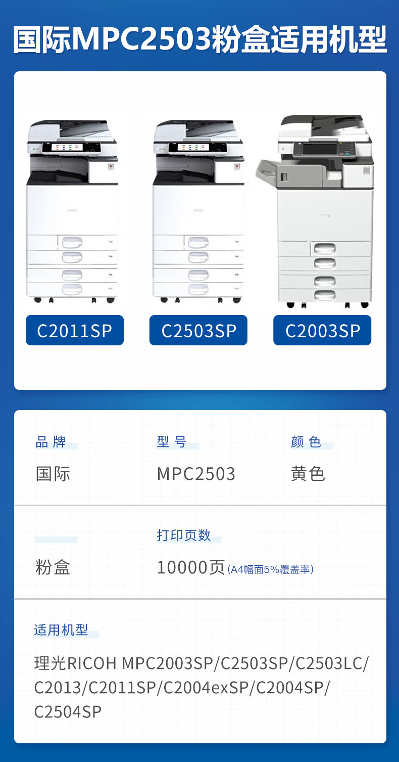 国际 MP C2503Y 粉盒 适用理光MPC2011sp硒鼓粉盒MP C2503墨粉盒C2003打印机碳粉2504复印机墨盒 MPC2503C黄色大容量约10000页