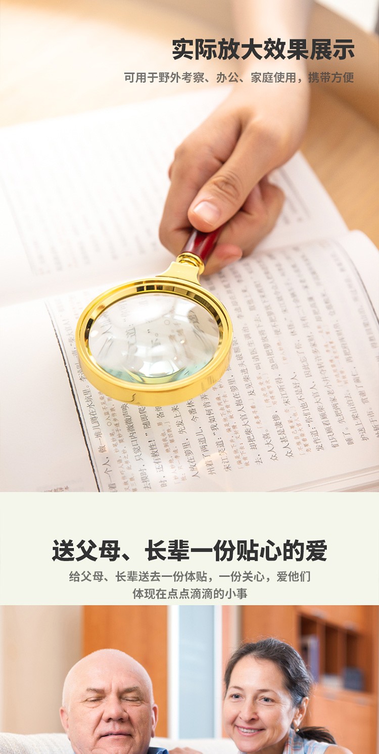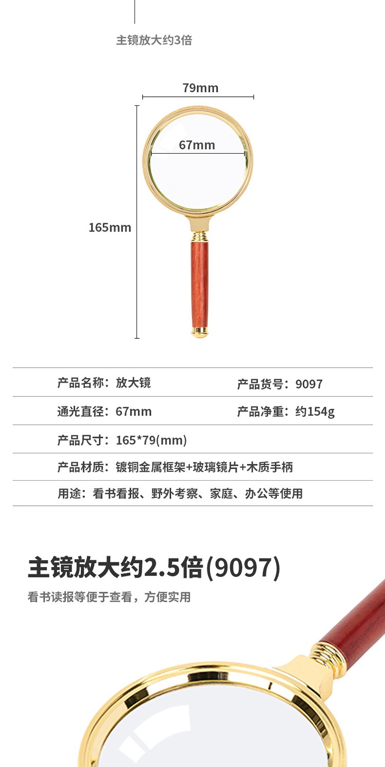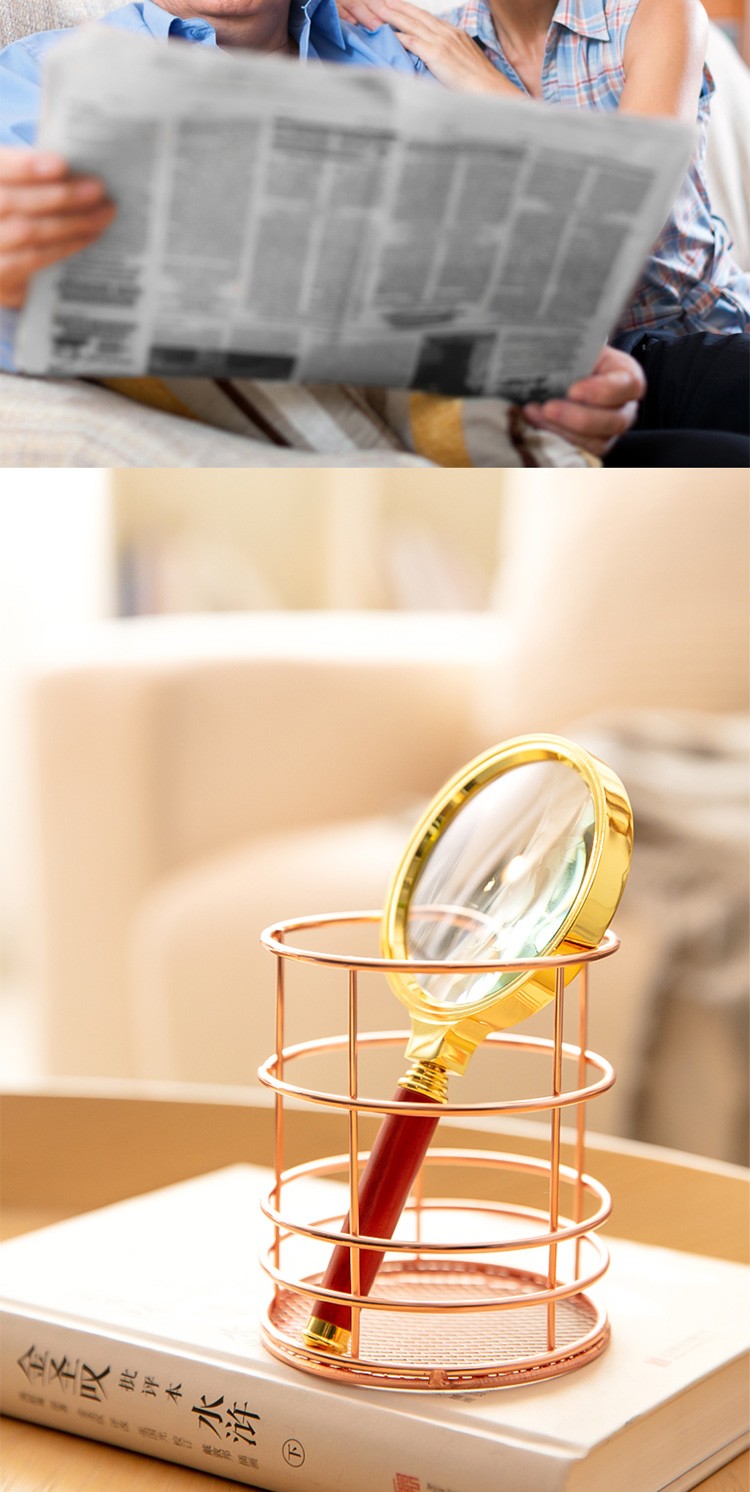 得力/deli 9096 放大镜 老人阅读儿童光学放大镜金属放大镜复古金属框红木手柄架 直径60mm