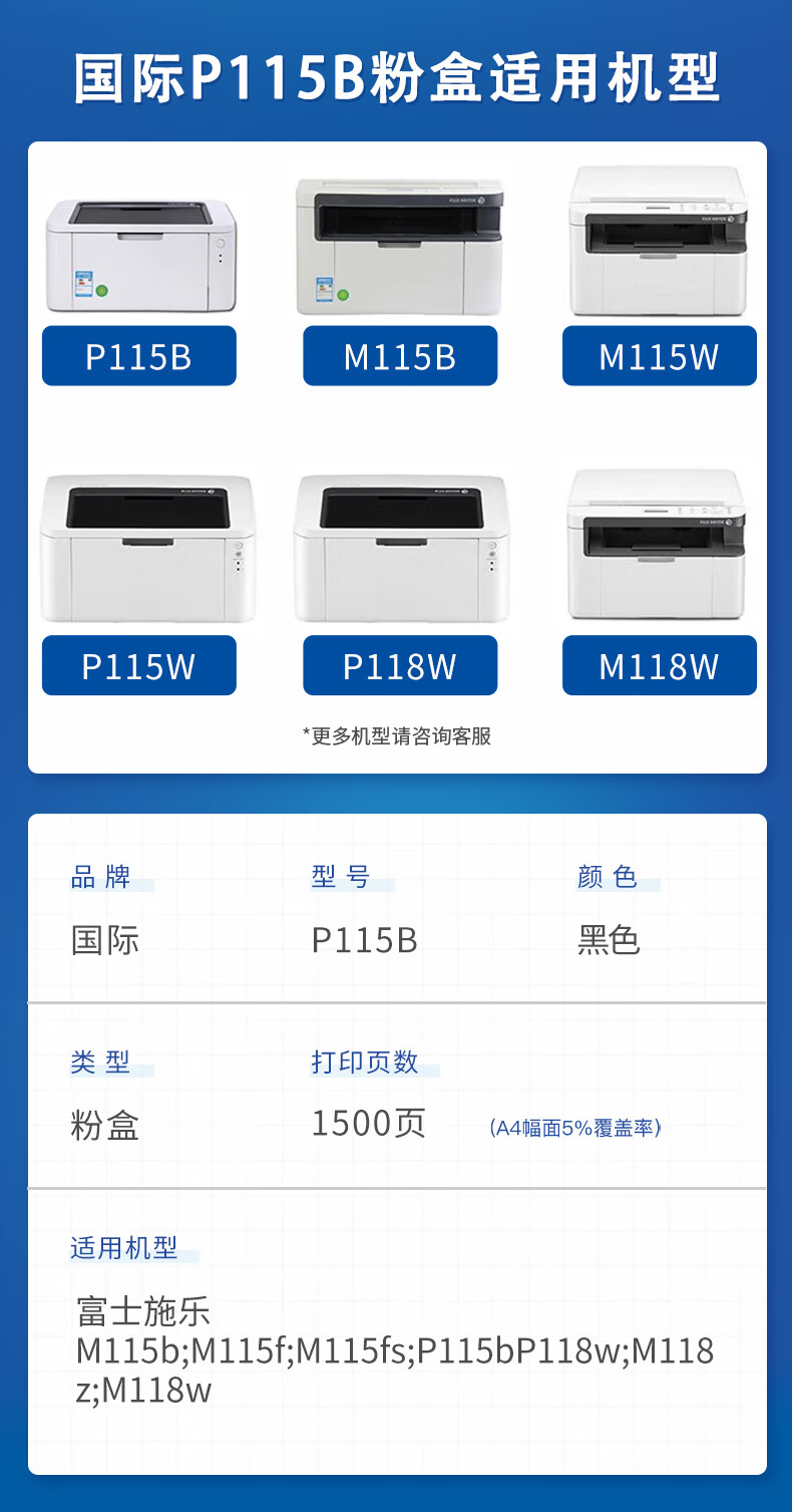 国际 P115B 粉盒 适用富士施乐M115b硒鼓M118w MF115FS P115W P118w 黑色 P115B墨粉盒
