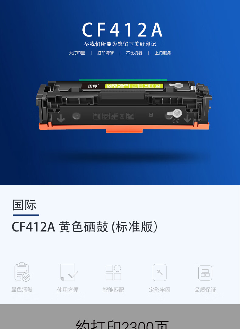 国际 CF412A 硒鼓 适用惠普M452DW/dn硒鼓M377dw打印机M477FDW/NW墨盒410A粉盒 【上机即用】CF412A黄色易加粉硒鼓