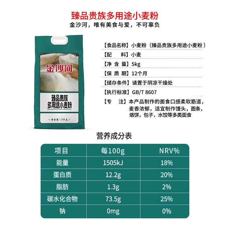 金沙河 5kg小麦面粉 臻品贵族多用途小麦粉 馒头 包子 饺子多用途面粉10斤