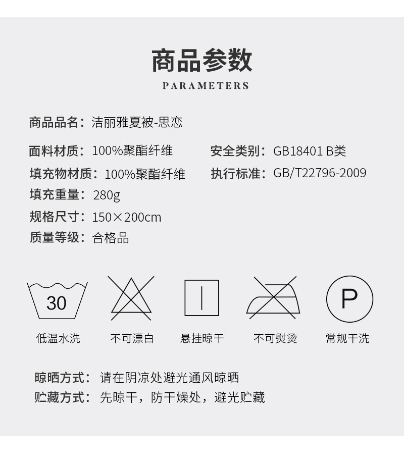 洁丽雅/GRACE JLYXB002被子/被单 洁丽雅夏被-思恋 150*200cm