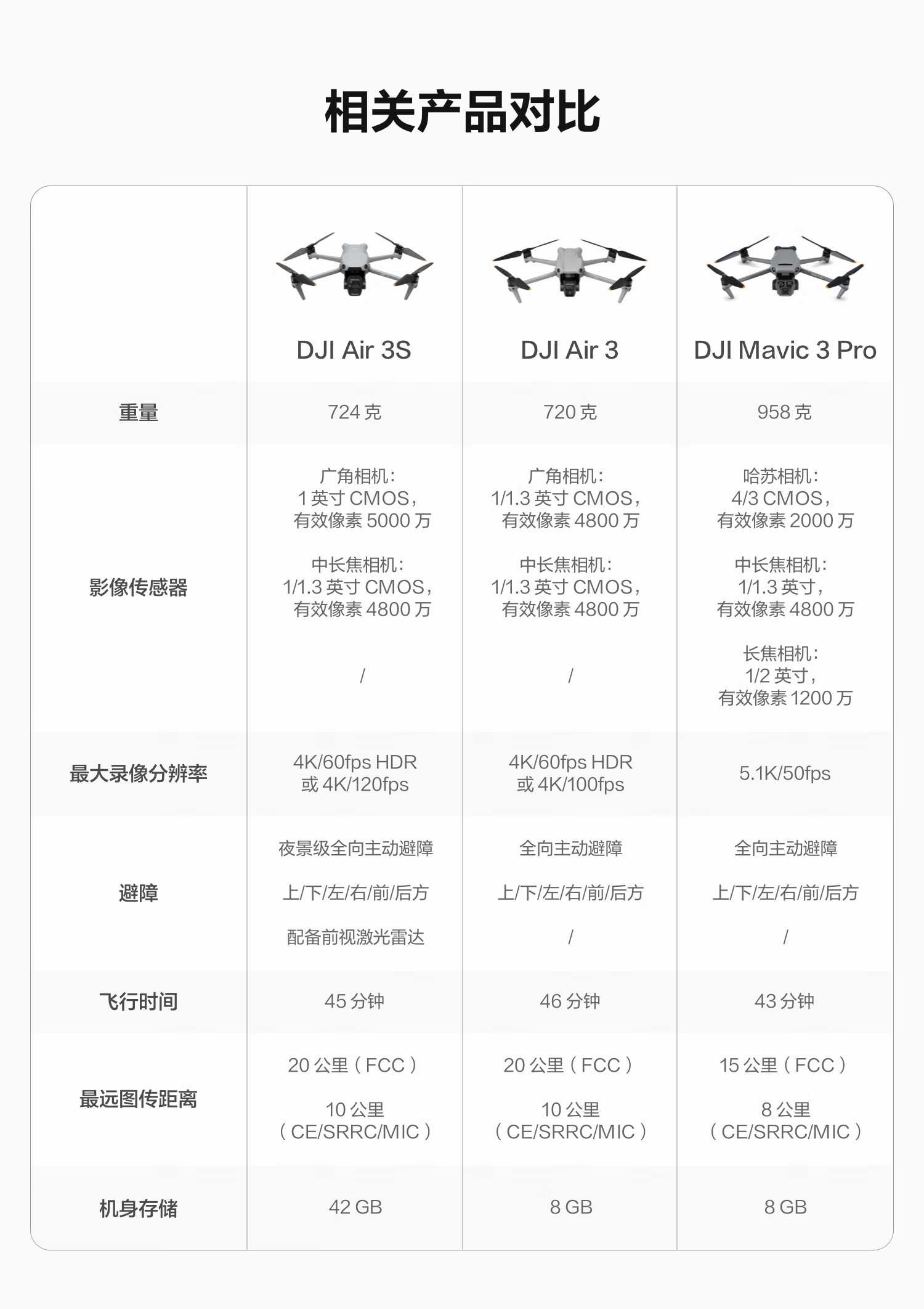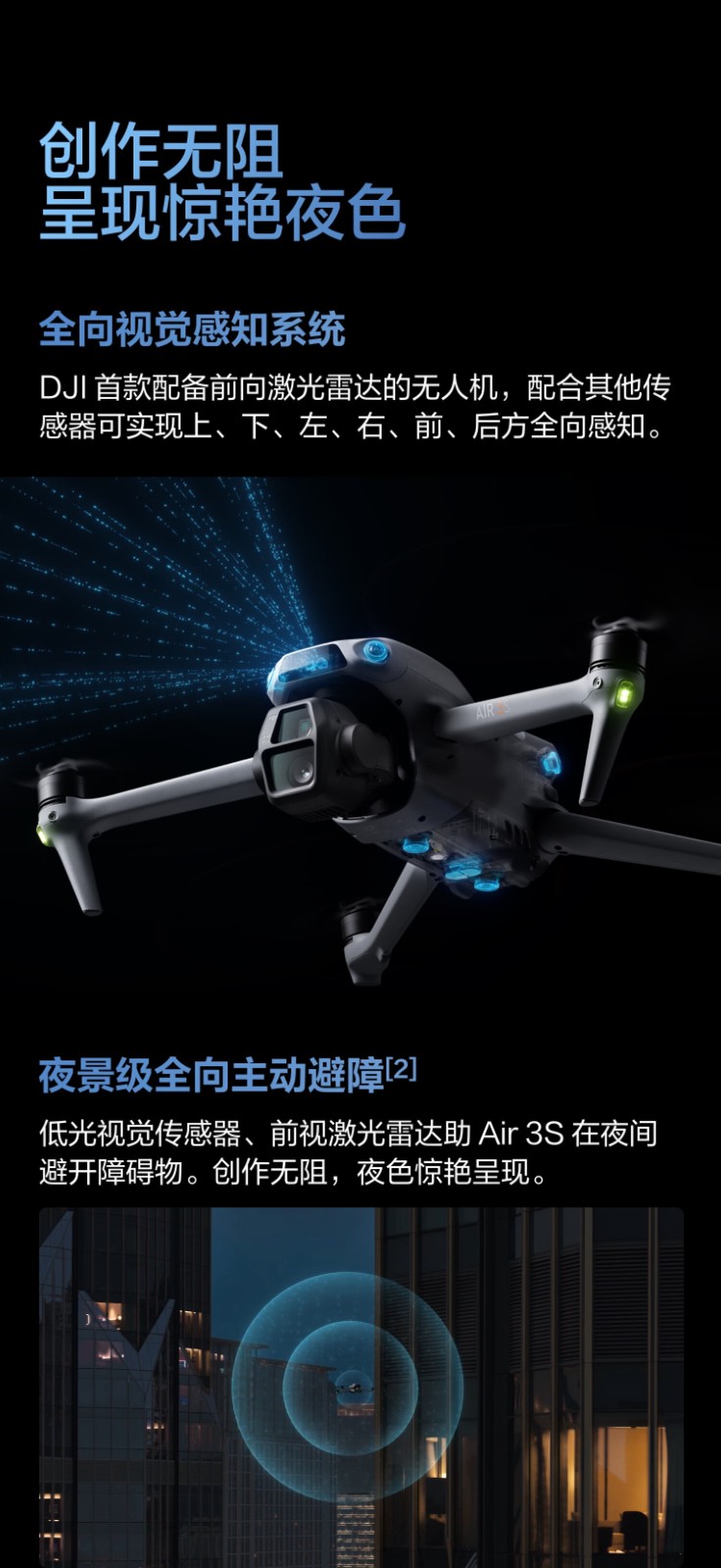 大疆/DJI Air 3S 无人机 畅飞三电套装(带屏遥控器)双摄旗舰旅拍无人机全向主动避障航拍飞机+随心换2年版
