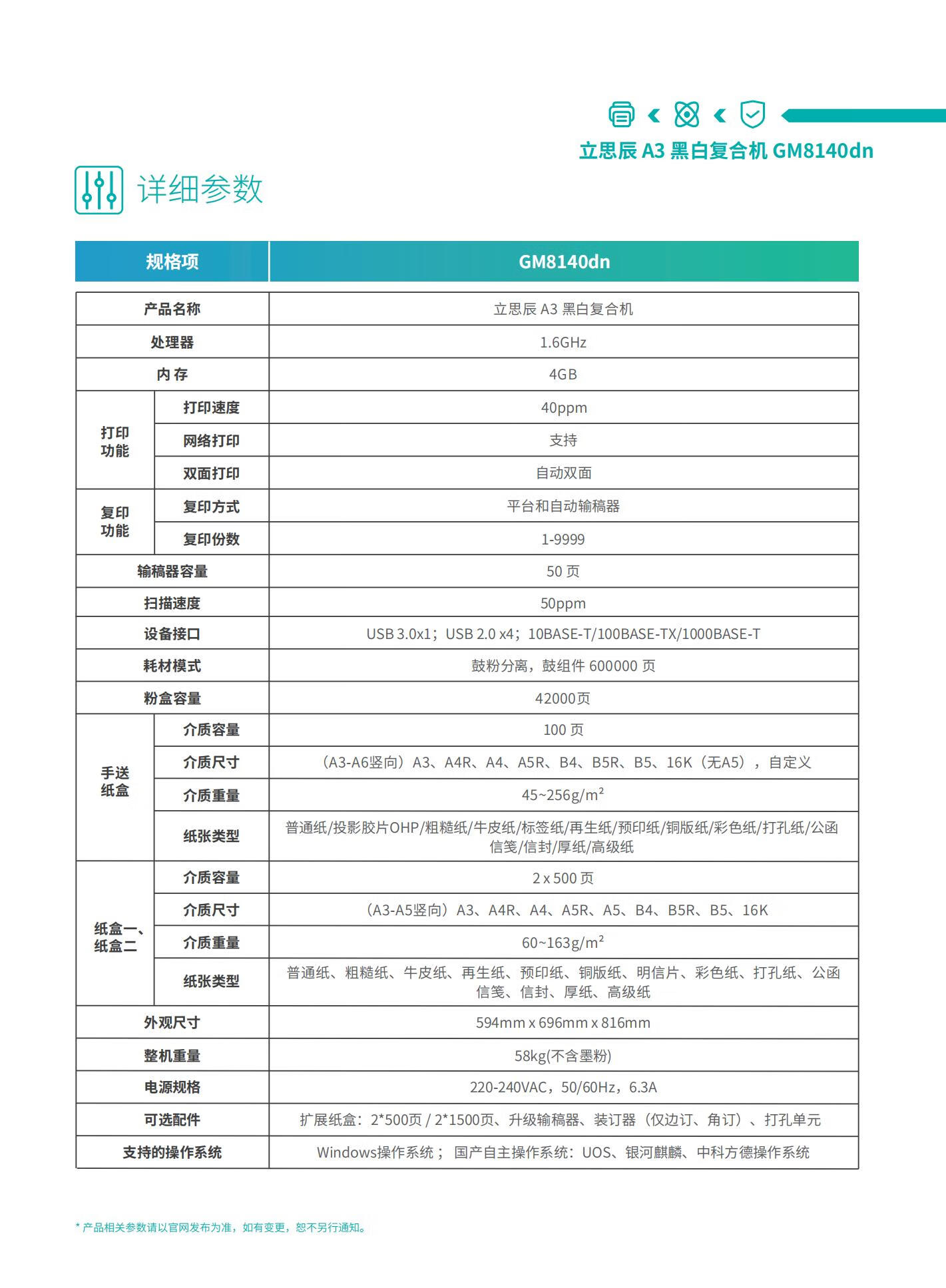 立思辰/LANXUM GM8140dn复印机 A3黑白多功能一体机 打印/复印/扫描