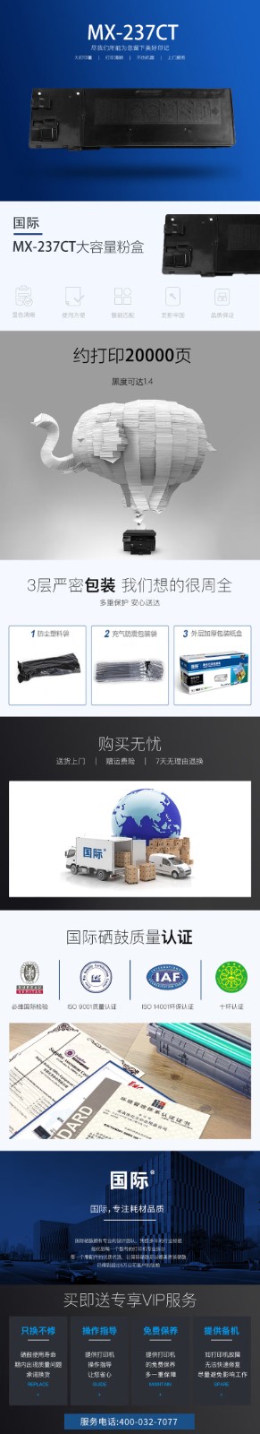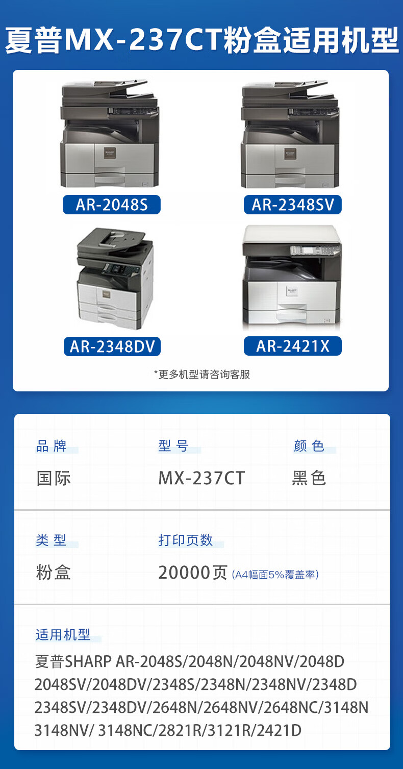 国际 MX-237CT 粉盒 适用夏普2048S墨盒2348SV粉盒3148N硒鼓2421碳粉盒2221R MX-237CT墨粉盒 1支装
