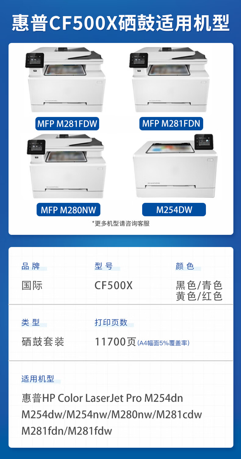 国际 CF500XT 硒鼓 适用惠普m281fdw cf500a硒鼓m254dw/nw m254dn打印机粉盒店长力荐CF500X大容量带芯片硒鼓4色套装
