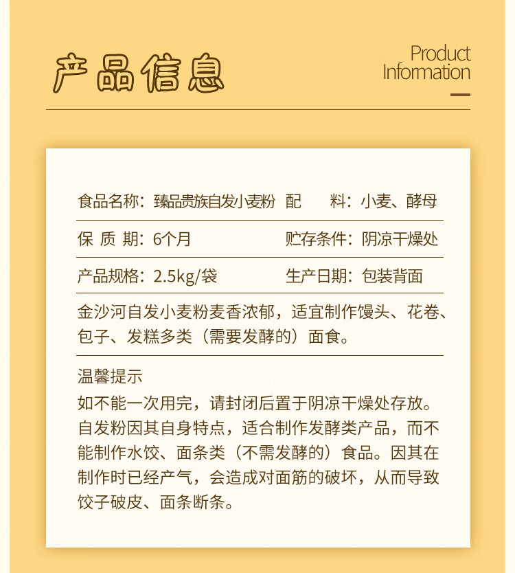 金沙河 2.5kg小麦面粉 臻品贵族自发小麦粉 包子 馒头 自发粉小麦粉5斤