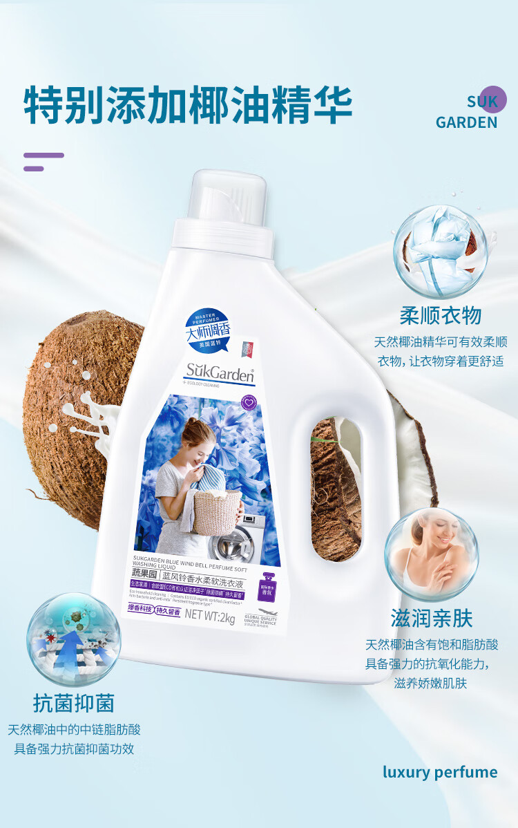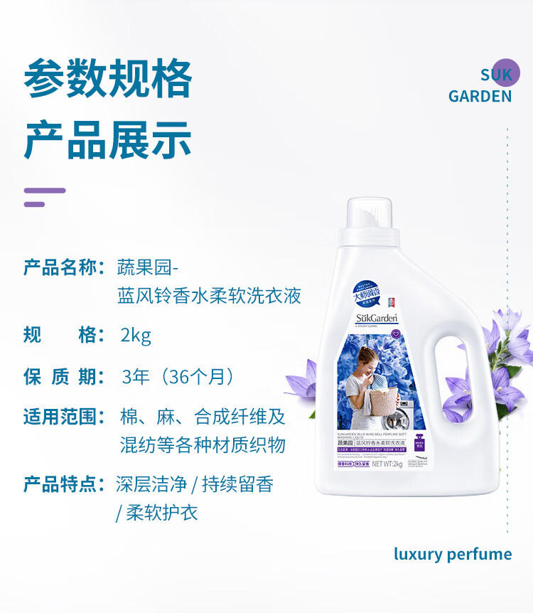 蔬果园/SUKGARDEN 2kg 洗衣液/洗衣粉 蓝风铃香水柔软洗衣液