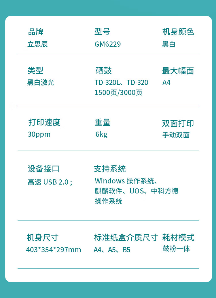 立思辰/LANXUM GM6229dn多功能一体机 黑白,打印复印扫描,双面,网络,输稿器,30页/分钟