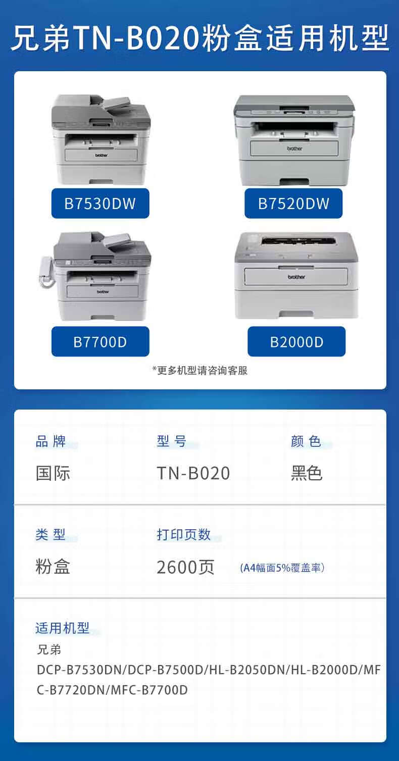 国际 TNB020 粉盒 适用兄弟DCP-B7535DW DCP-B7520DW B7530DN墨盒 TN-B020粉盒 约2600页