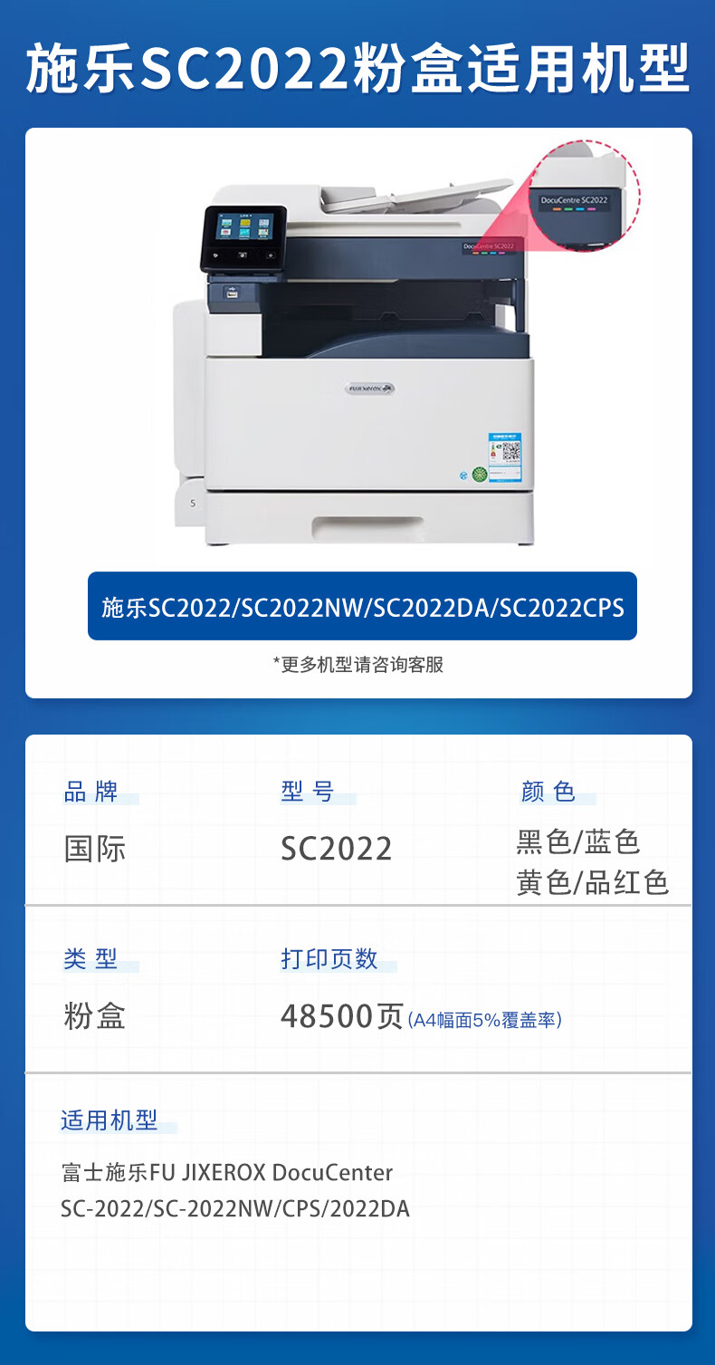 国际 SC2022T 粉盒 适用富士施乐DocuCentre SC2022CPS/DA粉盒SC2022/NW复印机墨粉盒 SC2022 四色套装大容量墨粉盒 48500页 N