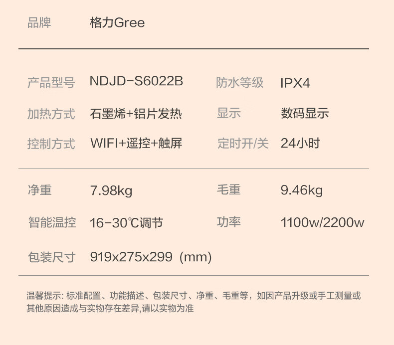 格力/GREE NDJD-S6022B取暖器 踢脚线
