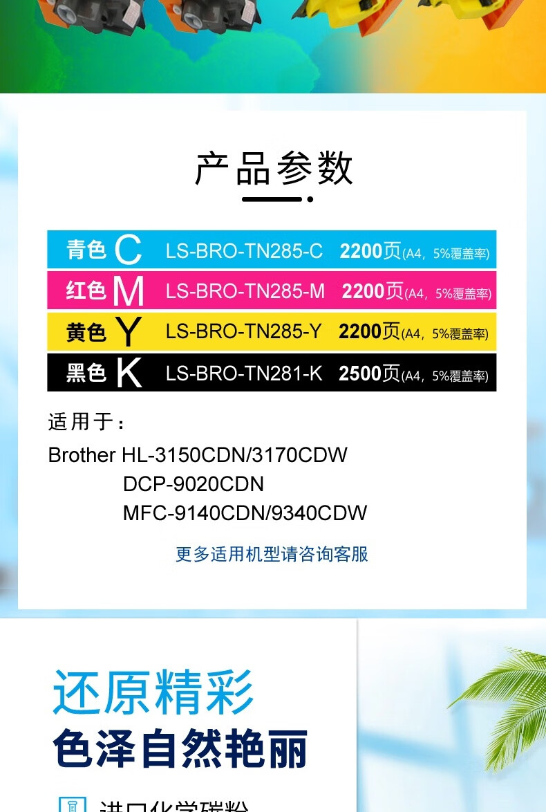 莱盛 LS-BRO-TN281BK 粉盒 标容 黑色 全新 无需芯片 2.5K 12支/箱