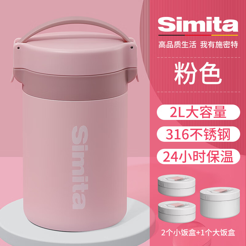 施密特/simita SF-200-08A保温杯 大容量肴佳保温饭盒2L-粉色