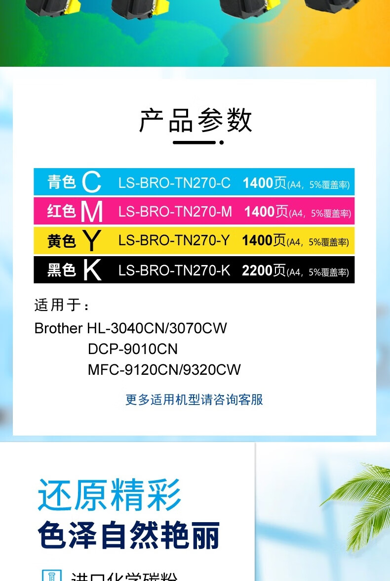 莱盛 LS-BRO-TN270-Y 粉盒 标容 黄色 全新 无需芯片 1.4K 12支/箱