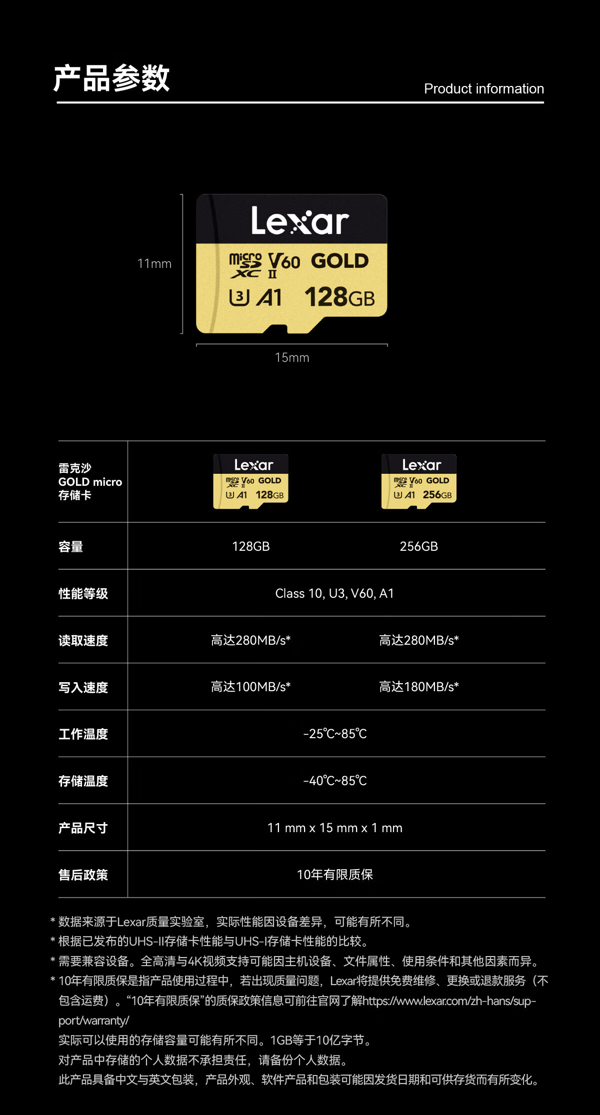 雷克沙/Lexar GOLD 128G U盘/存储卡 读280MB/s 写100MB/s 高速内存卡 4K