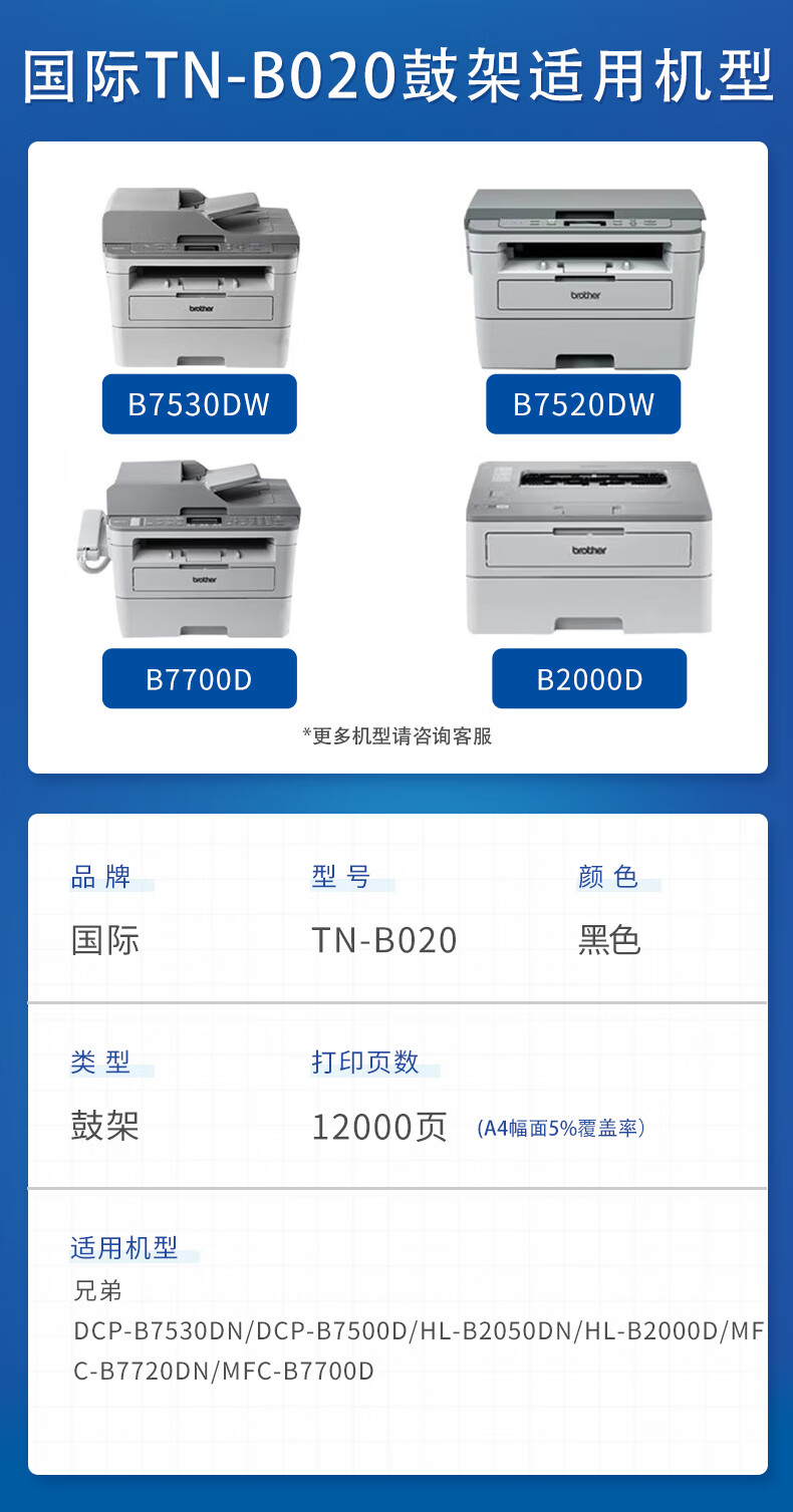 国际 DRB020 硒鼓 适用兄弟DCP-B7530DN/7500D HL-B2050DN/B2000D MFC-B7720DN/B7700D