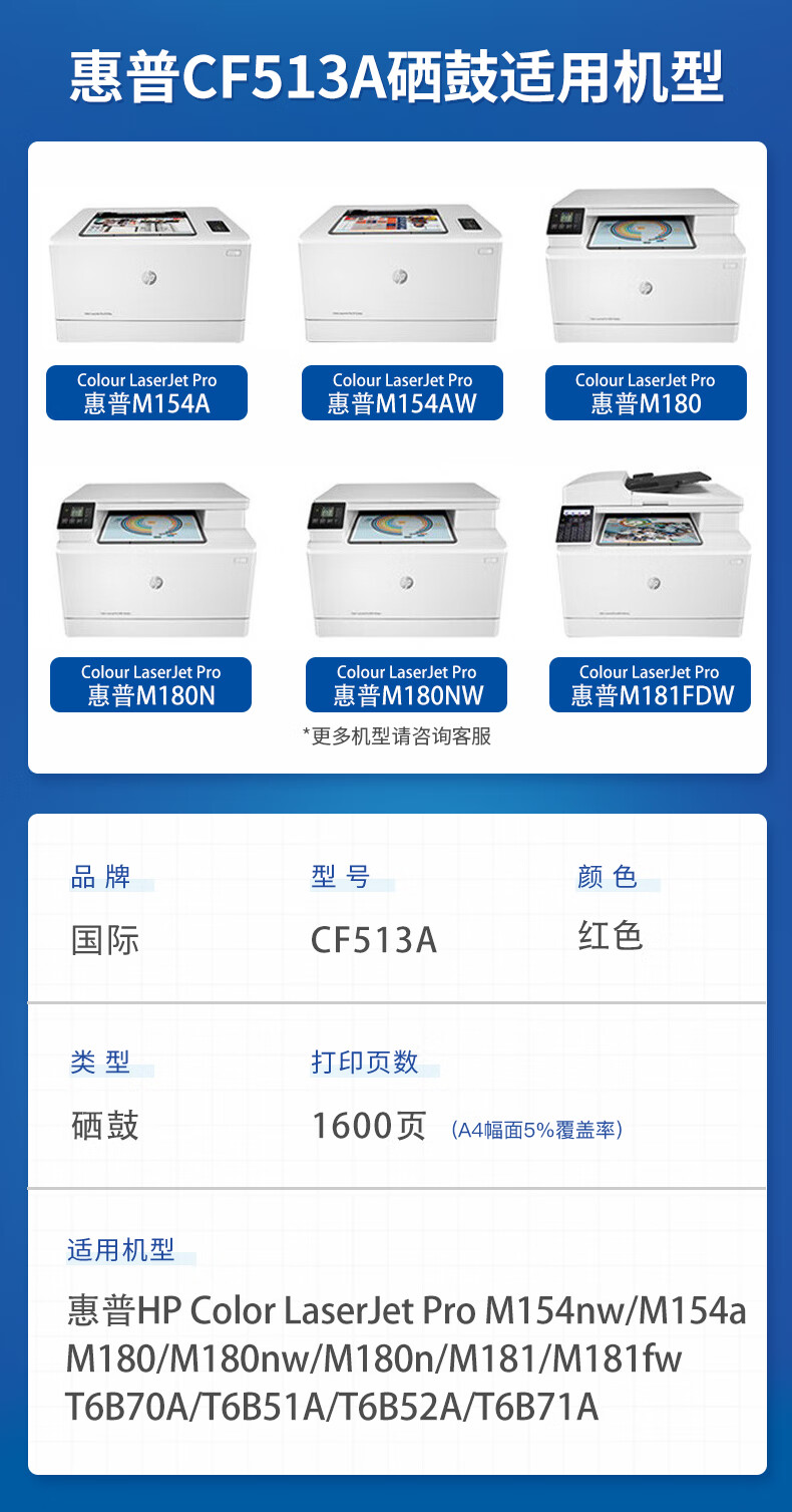 国际 CF513A 硒鼓 适用惠普204a硒鼓m154a硒鼓m180n m181fw打印机墨盒m154nw【易加粉带芯片】 CF513A品红色硒鼓