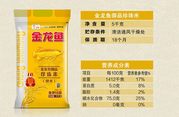 金龙鱼/JINLONGYU 5kg大米 御品珍珠米5KG