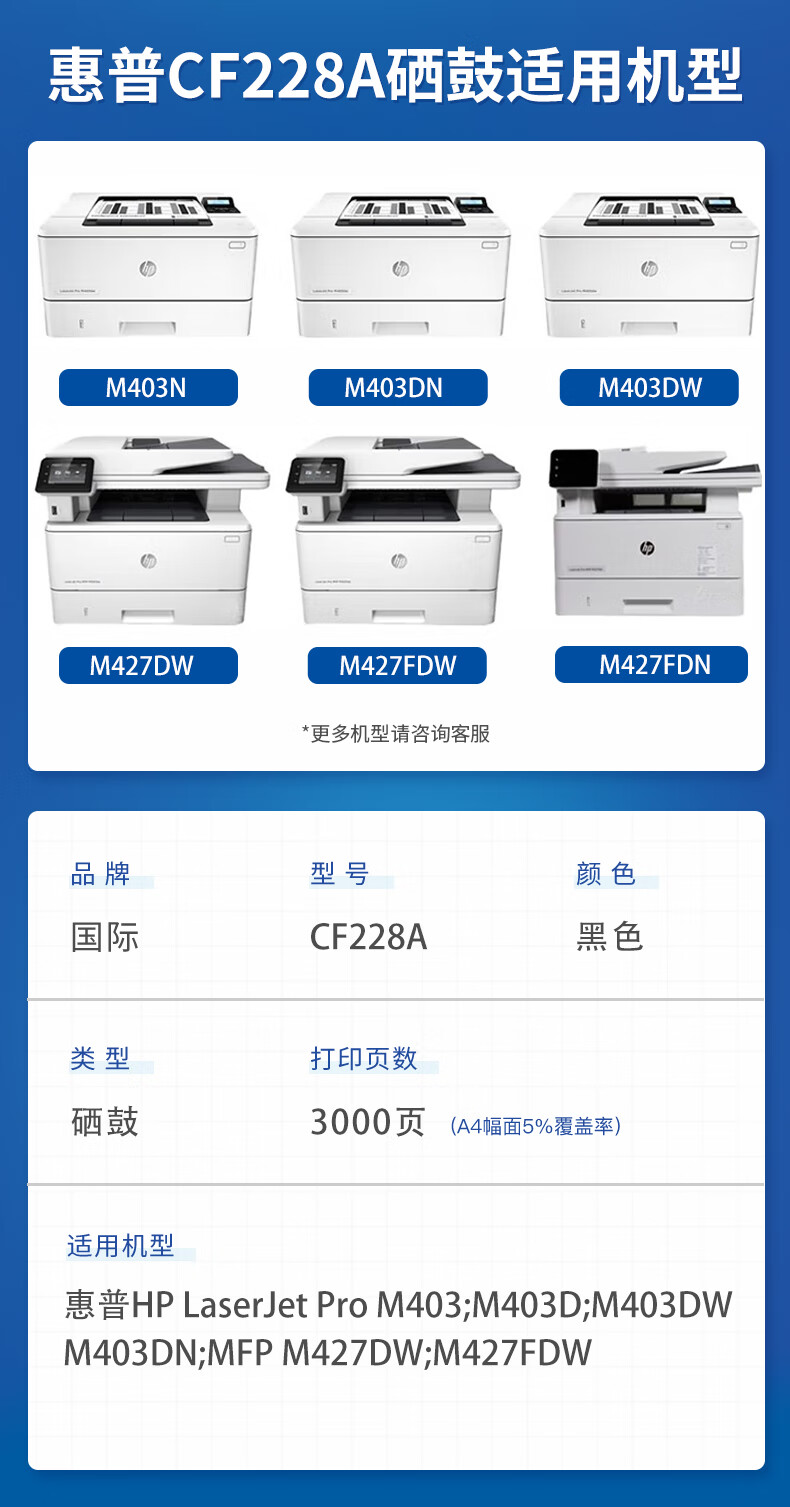 国际 CF228A 硒鼓 适用HP惠普M403d M403dn M403dw墨盒M403n M427fdw 【带芯片】cf228a易加粉硒鼓(3000页)