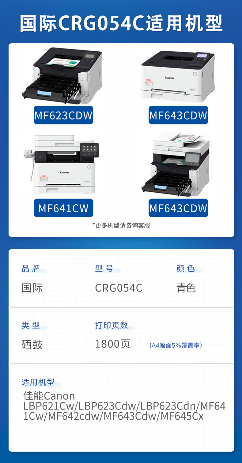 国际 CRG-054C 硒鼓 适用佳能645cx硒鼓MF645CX mf643cdwLBP621cwLBP623 CRG054 CRG-054C青色硒鼓【1600页】