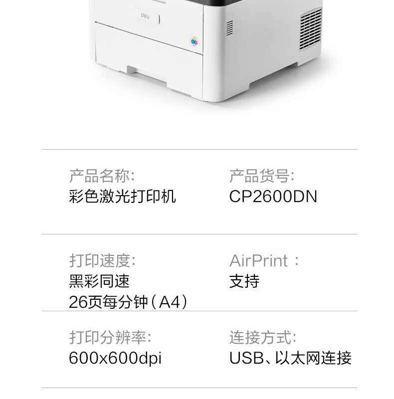 得力/deli CP2600DN A4 彩色打印机 彩色激光打印机(白色)(台)