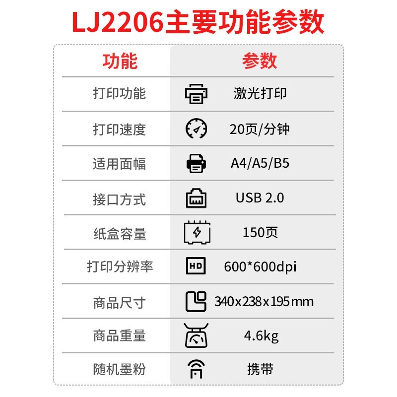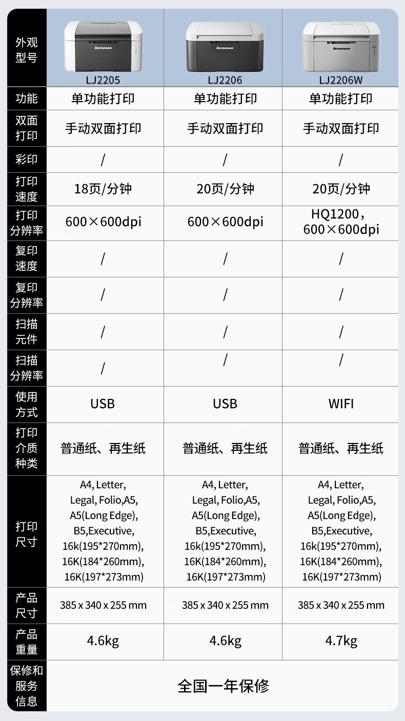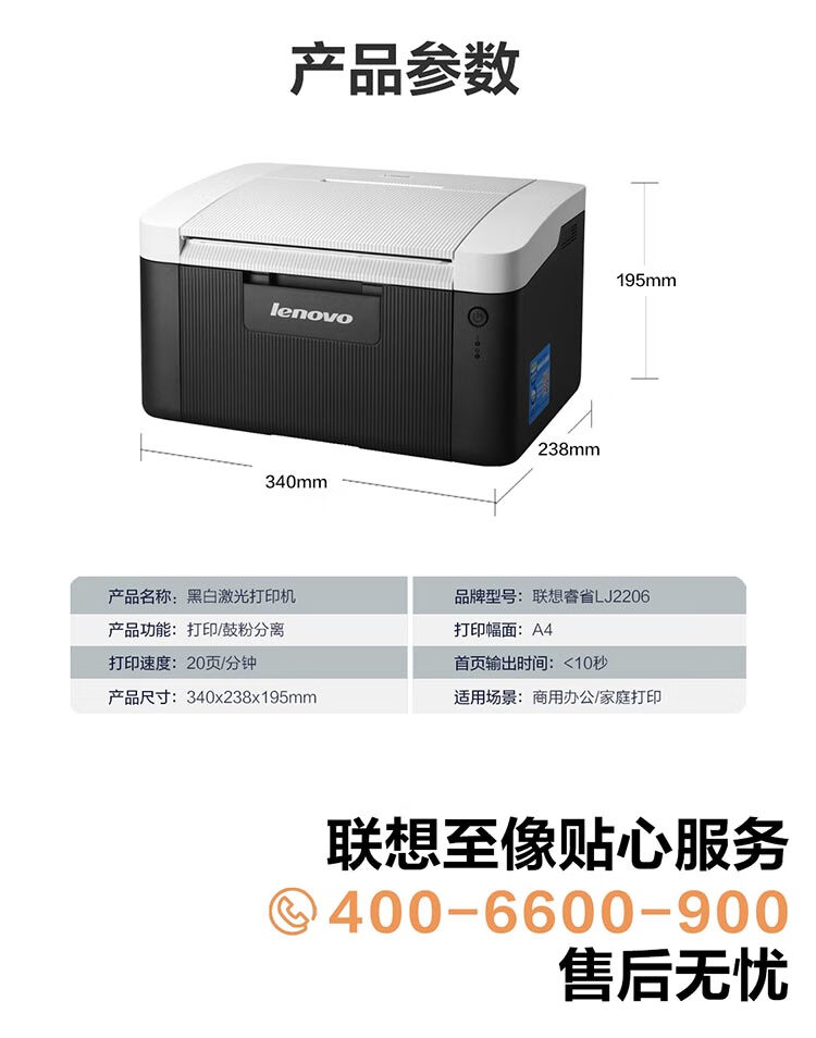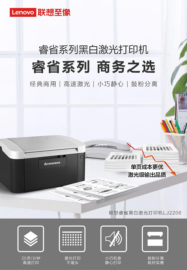 联想/LENOVO LJ2206 A4 黑白打印机 【单功能USB】LJ2206(经济实惠)