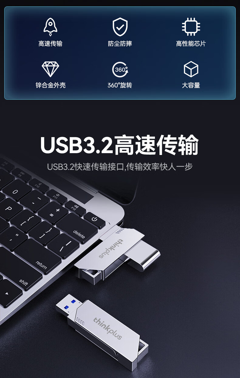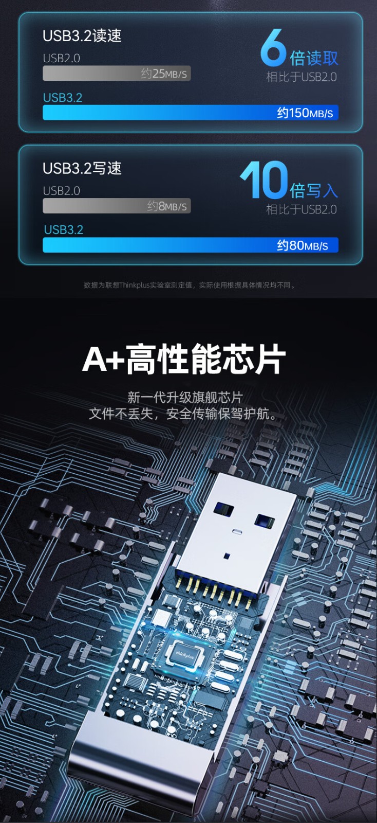 联想/LENOVO TPU301plus 256GB U盘/存储卡 USB3.2 电脑U盘 办公学习