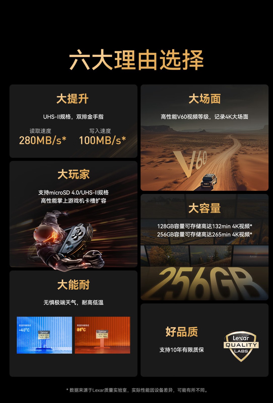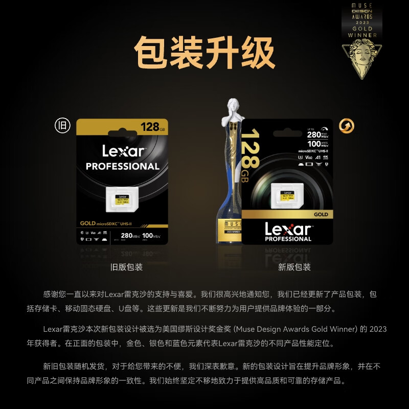 雷克沙/Lexar GOLD 256G U盘/存储卡 读280MB/s 写100MB/s 高速内存卡 4K