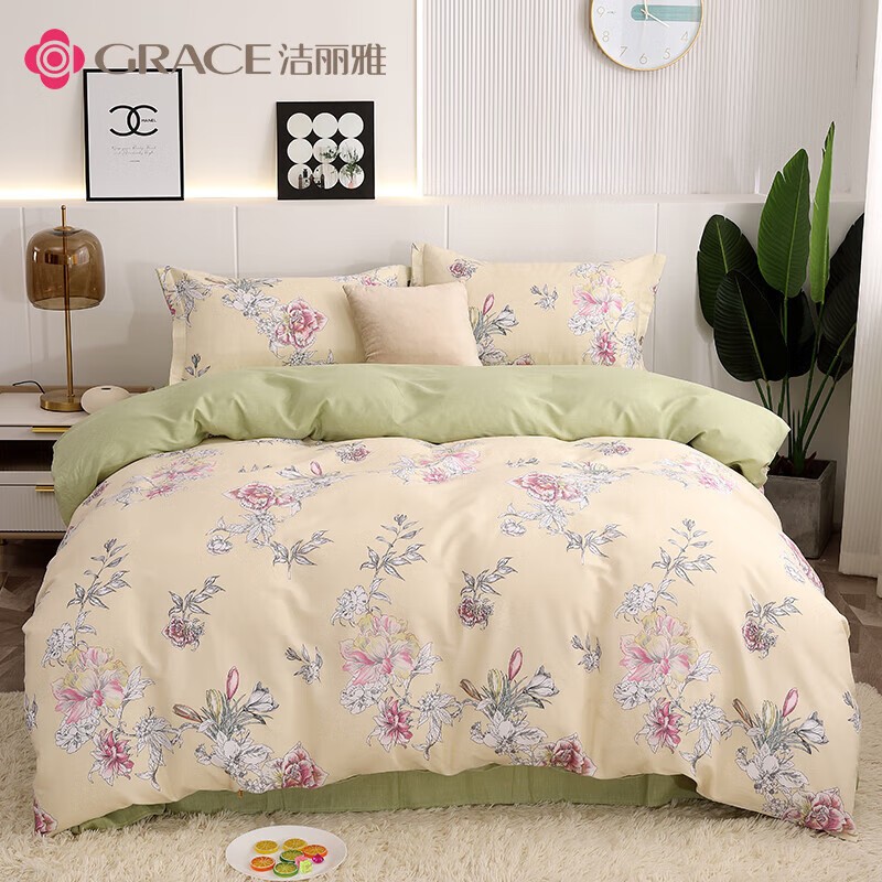 洁丽雅/GRACE JLY-YHE118被子/被单 洁丽雅Grace水洗棉套件-花间妍 被套:200x230cm 床单:230x250cm 枕套:48x74cm*2