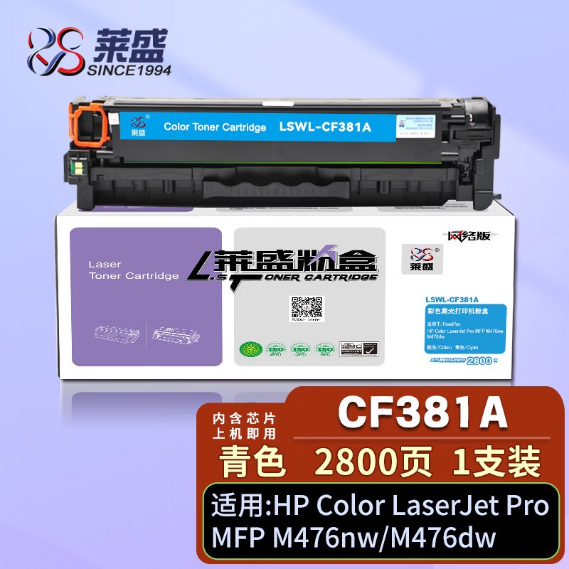 莱盛 LS-CF381A 粉盒 标容 青色 全新 有芯片 2.8K 20支/箱