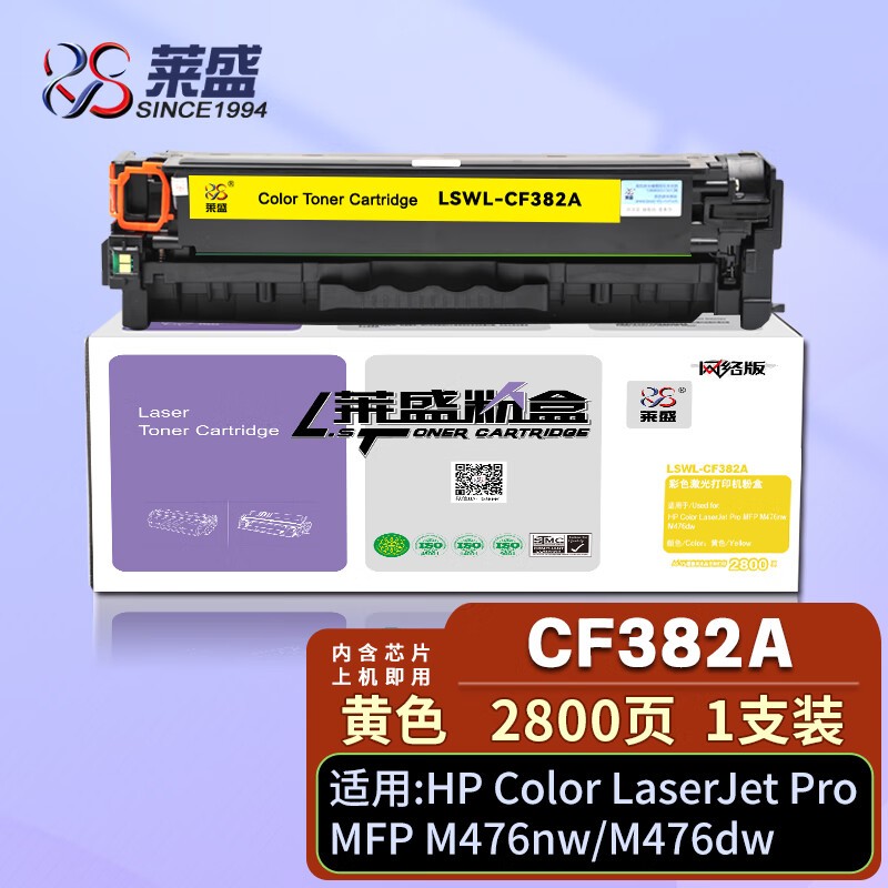 莱盛 LS-CF382A 粉盒 标容 黄色 全新 有芯片 2.8K 20支/箱
